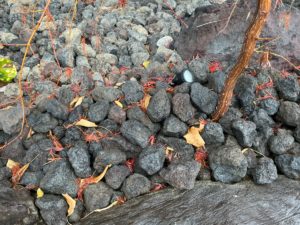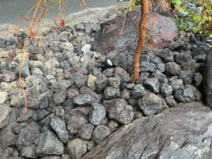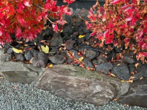 石垣や石積みの上の落ち葉はホウキも使えないので、大変ですがひとつひとつ取り除いてます。 綺麗になりました。