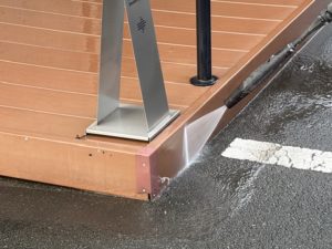 黒ずんだ石畳や喫煙所のウッドデッキなどの普通の清掃では落ちない汚れもきれいに落ちました。