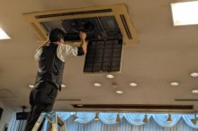 第2ホールの空調の清掃を行いました。長い脚立を使用して高所での作業でしたがフィルターのホコリや汚れを落とし、暖房の効きも良くなりました。…