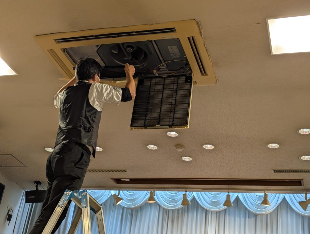 長い脚立を使用して高所での作業でしたがフィルターのホコリや汚れを落とし、暖房の効きも良くなりました。