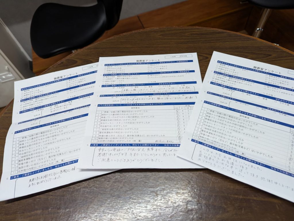 ご施行させていただいた喪家様より、アンケートにてご返答をいただきました。