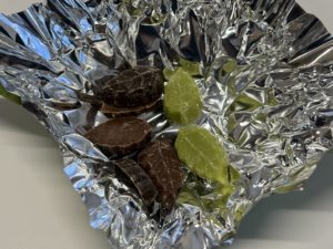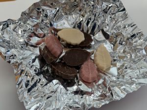 包を開けると、葉っぱを模ったチョコレートが入っており、袋の色によって中身の内容が違っていました。