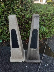 斎場の駐車場で使用しているポールを高圧洗浄機で清掃しました。