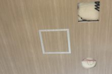 本日エアコンの設置が終わり、続いて天井クロスの貼り替えが行われました。後は電気器具を設置して工事は終了となります。 …