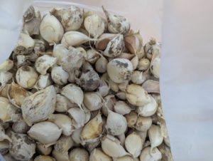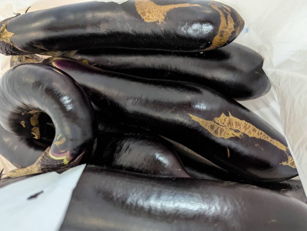 スタッフが自宅で育てたナスとニンニクを持ってきてくれました