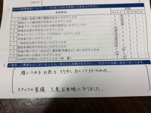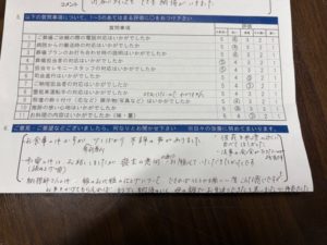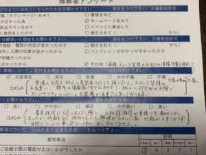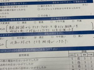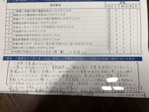ご施行させていただいたお客様よりアンケートのお答えをいただきました。