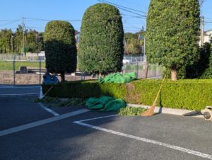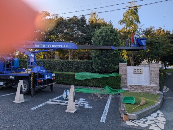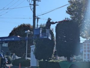 今日は業者の方にお願いし、敷地内の自分達では手の届かない所の剪定をしていただきました。