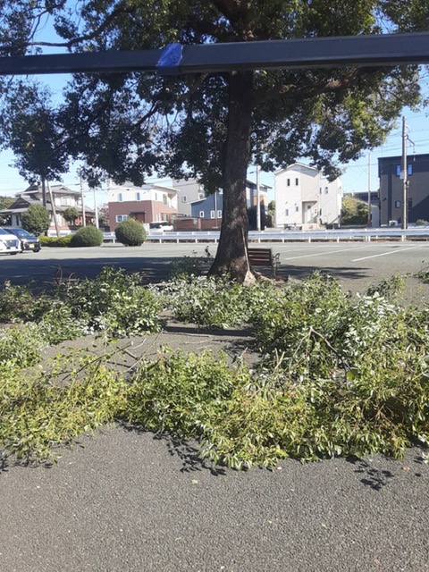 高所作業車を使い、きれいに切り揃えていただき、大分すっきりしました。
