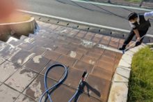 想苑のタイル清掃をしました。黒ずんだ部分に洗剤をかけ、デッキブラシで磨いています。なかなか汚れが取れず苦労しましたが、だいぶきれいになりました。 …