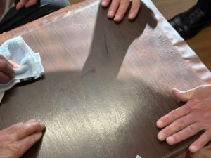 展示物などを置く台の傷が目立ってきたのでシートを貼り替えてきれいにしました。