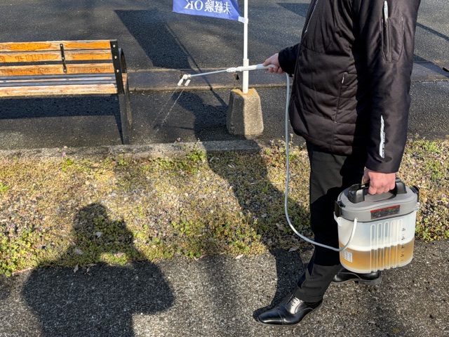 これからの時期、雑草もぐんぐん伸びてくるため早めに除草剤を散布しました。