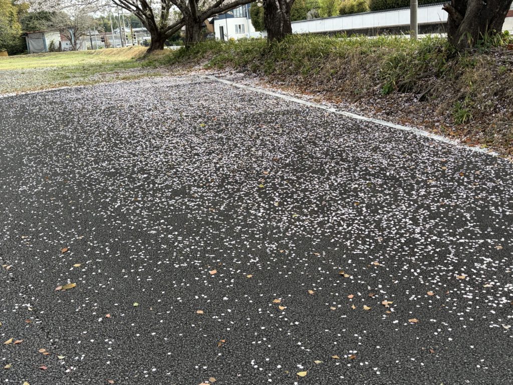 昨日の雨で桜の花びらがだいぶ散ってしまいました。