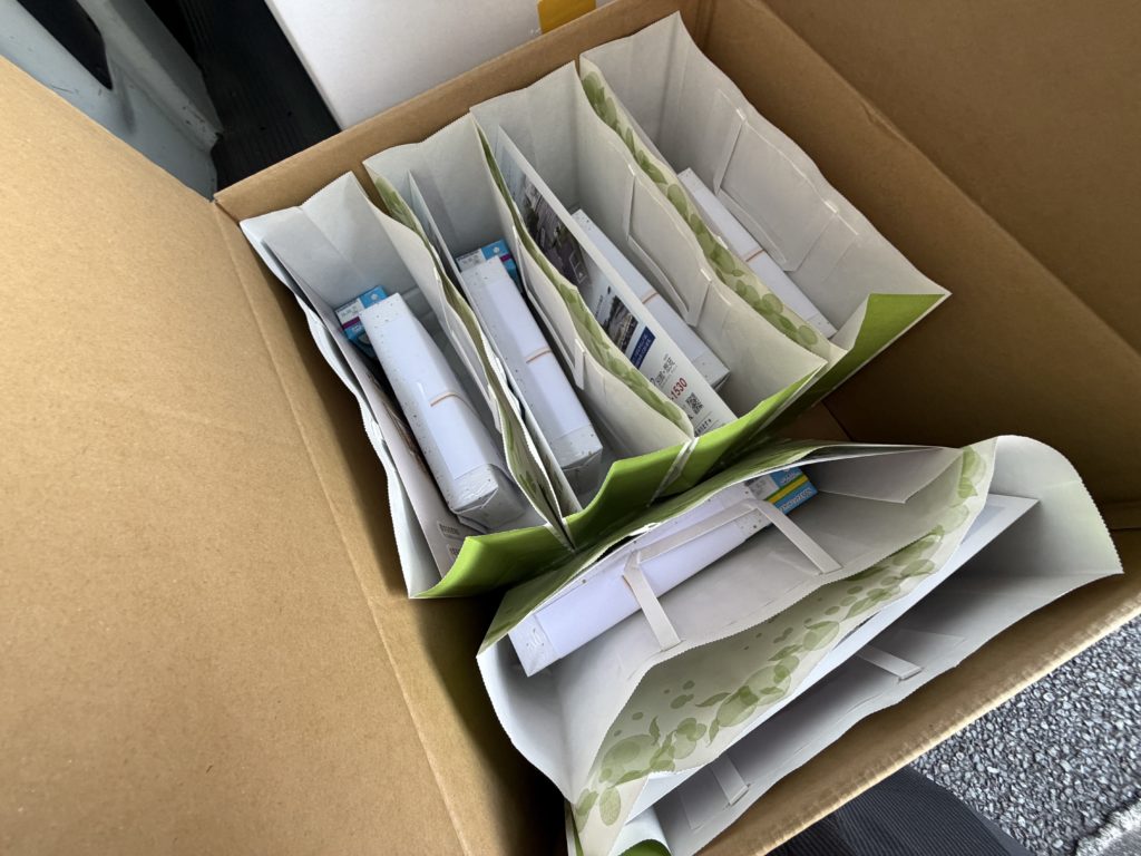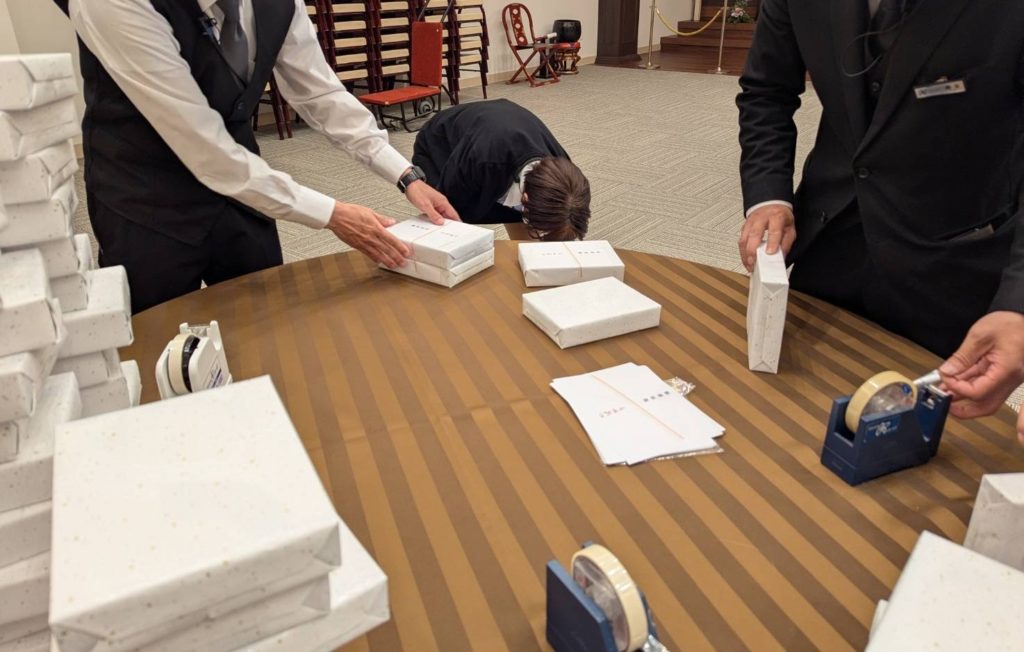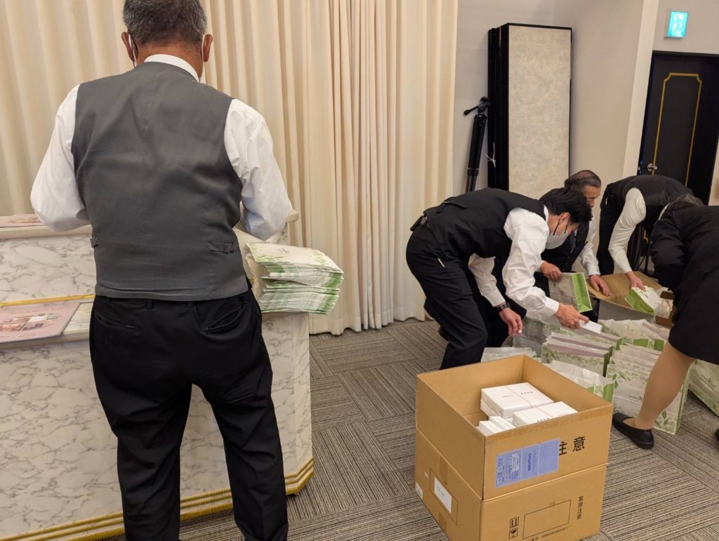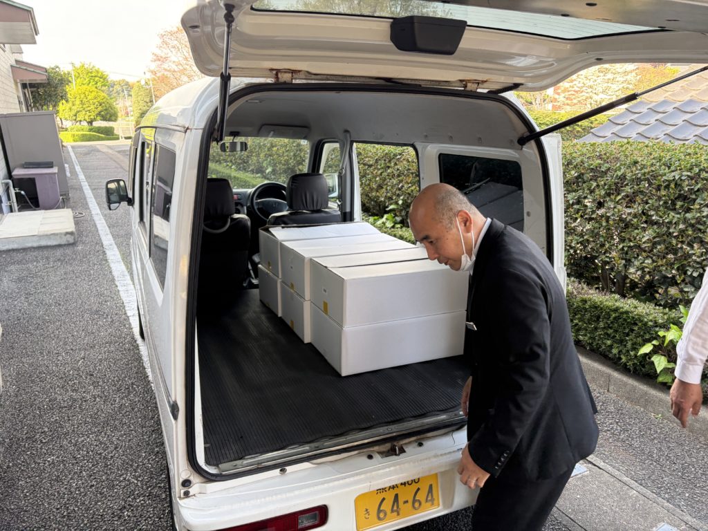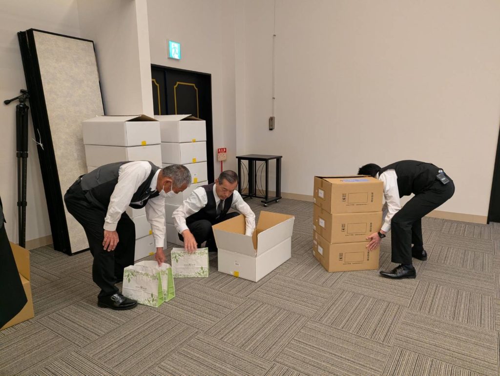 準備した品物を車に積み、会場に運びました。
